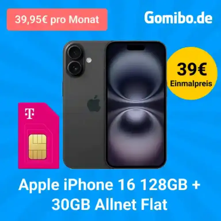 Bei Gomibo gibt es aktuell das Apple iPhone 17 (256 GB) mit dem Telekom MagentaMobil S zum absoluten Top-Preis! Dank 240 € Telekom-Cashback für Neukunden beträgt der Effektivpreis für den Tarif nur 4,32 €/Monat. Du bekommst das neueste iPhone im besten deutschen Netz – und das zum Sparpreis! 🔥 Telekom Aktion: Vom 03.02. bis 31.03.2026 erhalten Neukunden 240 € Cashback bei Abschluss eines MagentaMobil-Vertrags! Apple...