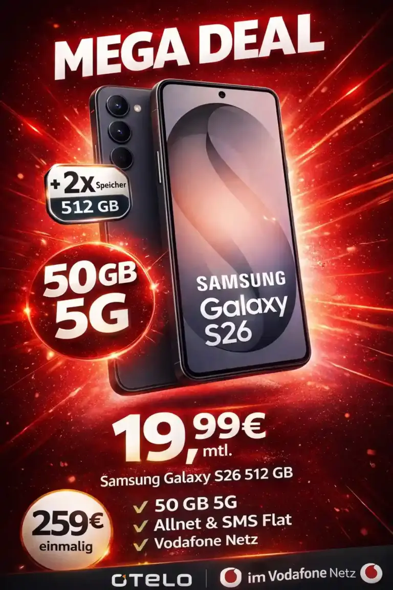 weiterlesen »Samsung Galaxy S26 (512 GB) + otelo 50 GB 5G für eff. -6,68€