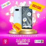 Ein zusätzlicher Vorteil ist das Google Pixel 7a, das du für eine einmalige Zuzahlung von 9,99€ plus Versandkosten von 4,99€ erhältst. Der aktuelle Marktwert des Geräts liegt bei durchschnittlich 359€, was dieses Angebot besonders attraktiv macht.