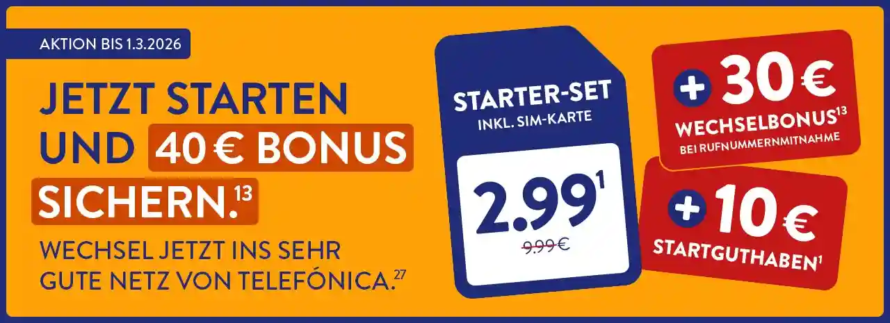 Die Aktion läuft vom 16.02. bis 01.03.2026. In diesem Zeitraum kostet das Starter-Set nur 2,99 € statt der regulären 9,99 €. Erhältlich online auf alditalk.de und in allen ALDI-Filialen.