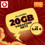 Mit effektiv 3,99€ pro Monat setzt die 20 GB Allmobil Allnet Flat einen neuen Preisstandard im Vodafone-Netz. Während vergleichbare Tarife meist bei 9€ monatlich starten, sparst du hier mehr als 50%. Die Kombination aus großzügigem Datenvolumen, Vodafone-Netzqualität und attraktiven Boni macht dieses Angebot besonders empfehlenswert.