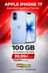Du zahlst effektiv 8,36 €/Monat für 100 GB 5G im Vodafone-Netz. Der Rest der Grundgebühr finanziert das iPhone 17. Ohne Anschlussgebühr sparst du zusätzlich ~40 €.