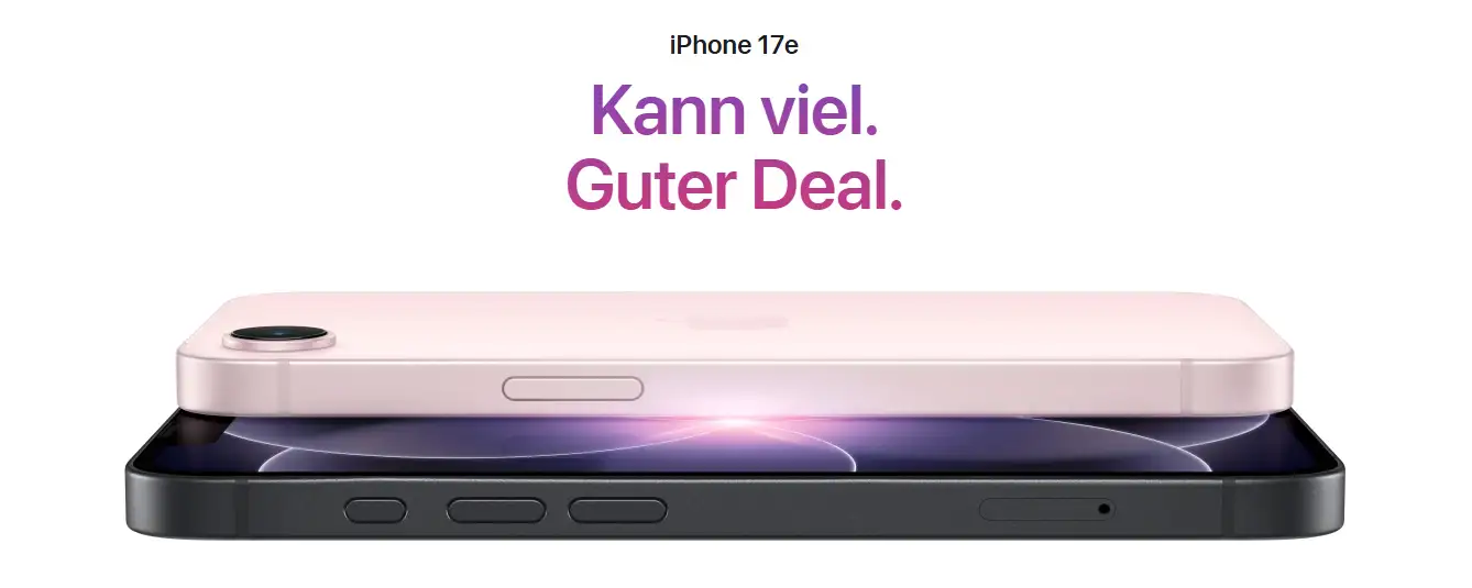 Das iPhone 17e kostet in Deutschland 699 € für 256 GB und 949 € für 512 GB (Apple Store). Im freien Handel sind die Preise identisch oder leicht günstiger.
