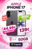 Telekom-Netz iPhone 17 + 50 GB 5G + 300€ Bonus! Apples neuestes iPhone zum Sparpreis Deal auf einen Blick Smartphone iPhone ...