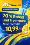 Happy SIM bietet günstige 5G-Tarife im o2-Netz mit Preisgarantie. Der Clou: Nach 24 Monaten wird der Tarif nicht teurer. Du bekommst bis zu 75 GB ab 5,99 € ...
