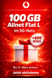 Vodafone CallYa Allnet Flat L: 100 GB 5G — 3 Monate gratis Vodafone spendiert der CallYa Allnet Flat L satte 60 € Bonusguthaben. Mit dem Gutschein-Code ...