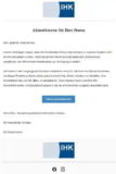 Aktuell sind Phishing-Mails im Namen der IHK im Umlauf, die dich zur Datenaktualisierung auffordern. Diese Mails tragen den Betreff "Dringende Bitte: ...