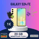 Das Samsung Galaxy S24 FE zählt zu den beliebten Fan-Editionen von Samsung und bietet top Technik zu einem fairen Preis. Aktuell bekommst du das Smartphone bei MediaMarkt in Kombination mit der freenet Allnet-Flat besonders günstig. Für nur 1 Euro Zuzahlung und 14,99 Euro monatlich erhältst du das Galaxy S24 FE mit 20 GB Datenvolumen im Vodafone-Netz.
