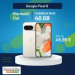 Mit dem Google Pixel 9 und dem Klarmobil Allnet Flat Vodafone Tarif holst du dir ein echtes Schnäppchen ins Haus. Du profitierst von einem Premium-Smartphone und einem umfangreichen Tarif für unter 30 € im Monat. Dank des niedrigen Effektivpreises von 2,11 € ist dieses Angebot kaum zu toppen.