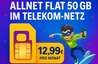 Der Tarif läuft im Telefónica-Netz (o2) und bietet 5G mit bis zu 50 Mbit/s. VoLTE und WLAN Call sind inklusive.