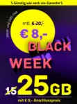- Datenvolumen: 25 GB LTE (50 Mbit/s Download, 25 Mbit/s Upload)