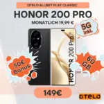 Starkes Display, riesiger Akku und 60 GB Datenvolumen – das Honor 200 Pro kommt jetzt in einem spannenden Bundle mit dem otelo Allnet Flat Classic Tarif. Für einmalig 149,95 Euro und monatlich 19,99 Euro bekommst du ein leistungsstarkes 5G-Smartphone mit einem umfangreichen Datentarif. Besonders interessant: Bei Rufnummernmitnahme winken dir 50 Euro Bonus.