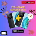 MediaMarkt / Saturn präsentiert ein unschlagbares Bundle-Angebot: Du erhältst zwei Honor Magic 6 Lite Smartphones mit einem 10 GB LTE-Tarif für nur 11,99 Euro monatlich. Das Besondere: Der Deal ist effektiv mehr als kostenlos!