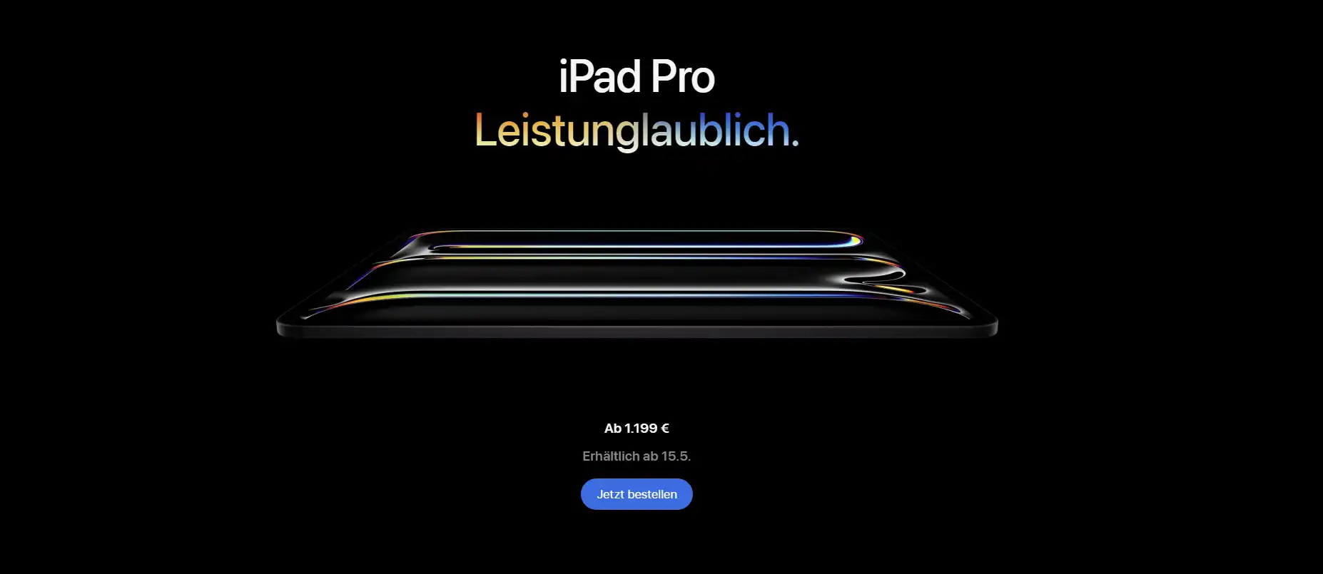 Das neue iPad Pro kann ab sofort bestellt werden und ist ab nächster Woche verfügbar. Die Preise beginnen bei 1.199 Euro für das 11-Zoll-Modell mit 256 GB und 1.549 Euro für das 13-Zoll-Modell. Das Magic Keyboard kostet 399 Euro für das 13-Zoll-Modell und 349 Euro für das 11-Zoll-Modell. Der Apple Pencil Pro ist für 149 Euro erhältlich.