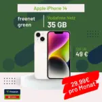 Mit diesem Tarif holst du dir das Apple iPhone 14 128GB zu einem unschlagbaren Preis-Leistungs-Verhältnis. Die 35 GB LTE-Datenvolumen bieten dir genug Freiheit für mobiles Arbeiten, Streaming und vieles mehr. Durch den 50 € Bonus bei Rufnummernmitnahme wird der Tarif zusätzlich attraktiver. Zum Vergleich: Ähnliche Tarife im Vodafone-Netz mit 35 GB Datenvolumen kosten ohne Smartphone oft um die 15 € monatlich – hier sparst du nicht nur, sondern bekommst auch noch ein hochwertiges Gerät dazu!