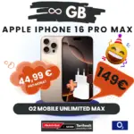 MediaMarkt bietet das iPhone 16 Pro Max (256 GB) aktuell mit dem O2 Mobile Unlimited Max Tarif zu folgenden Konditionen an: