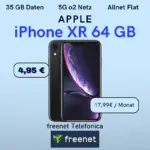 Suchst du ein iPhone mit einem günstigen Vertrag? Dann könnte das Angebot von freenet für dich interessant sein: Das iPhone XR (64 GB) für 4,95 € in Kombination mit einer 35 GB Allnet Flat im Telefonica-Netz für monatlich 17,99 €. Perfekt für Apple-Nutzer, die ein zuverlässiges und erschwingliches iPhone suchen.
