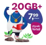 Der Tarif beinhaltet zudem eine Allnet-Flat und SMS-Flat. Du kannst also unbegrenzt telefonieren und Nachrichten verschicken. Zusätzlich bekommst du 80 Minuten für Anrufe in 50 Länder. Der Tarif kostet dich 7,99€ pro Monat, egal ob du dich für die 24-monatige Vertragslaufzeit oder die flexible Variante mit 1-monatiger Kündigungsfrist entscheidest.