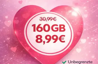 12 GB 5G für nur 2,49 € pro 28 Tage – mit der Lyca Mobile Valentinstags-Aktion bekommst du einen der günstigsten Prepaid-Tarife Deutschlands. Der Easy S kostet normalerweise 9,99 €, aktuell sparst du 75%.