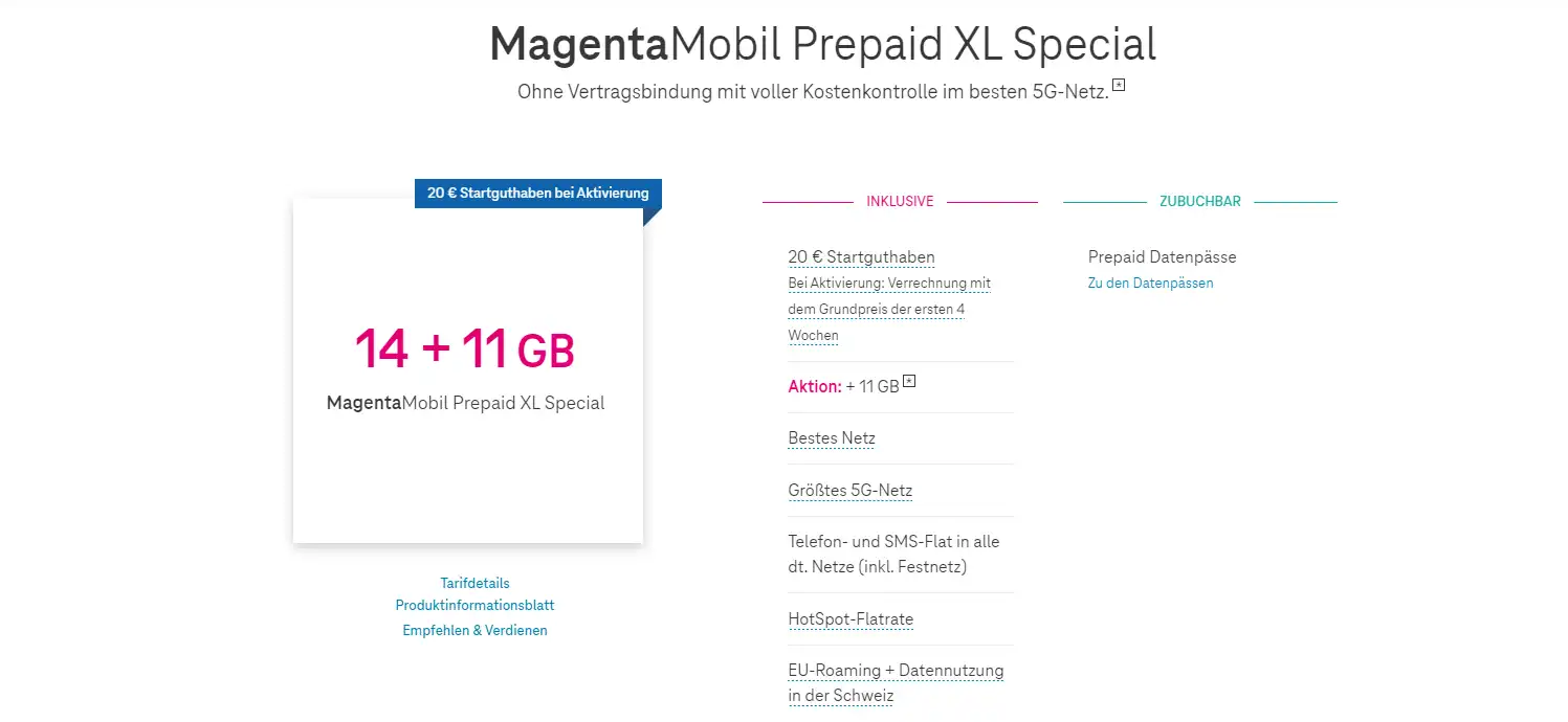 Was bekommst du im MagentaMobil Prepaid XL?