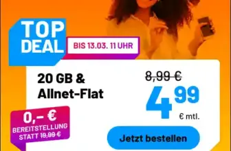 Unsere Empfehlung: Schau dir lieber sim.de (20 GB für 4,99 €) oder sim24 (10 GB für 3,99 €) an – gleiches Netz, deutlich günstiger!