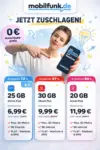 25 GB 5G für 6,99 € mtl. – monatlich kündbar, keine Anschlussgebühr.