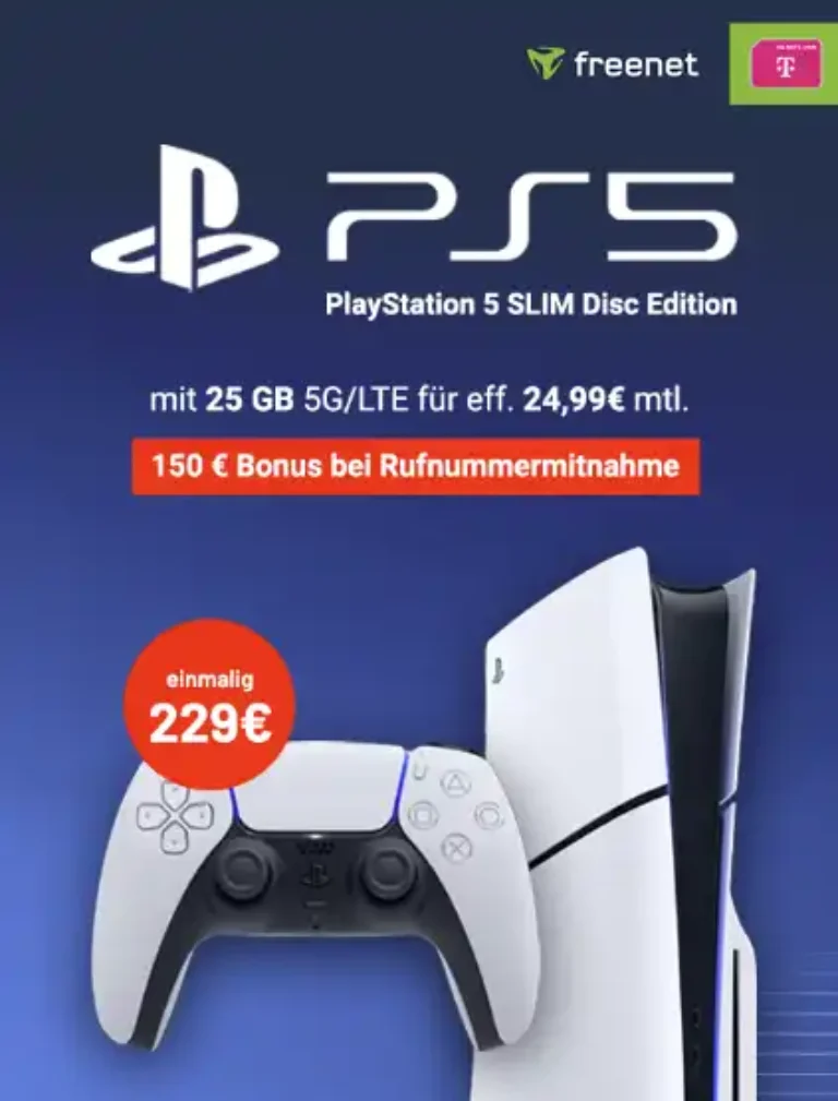 PS5 Slim für 229 € mit 25 GB Telekom Vertrag ab eff. 6,62 €