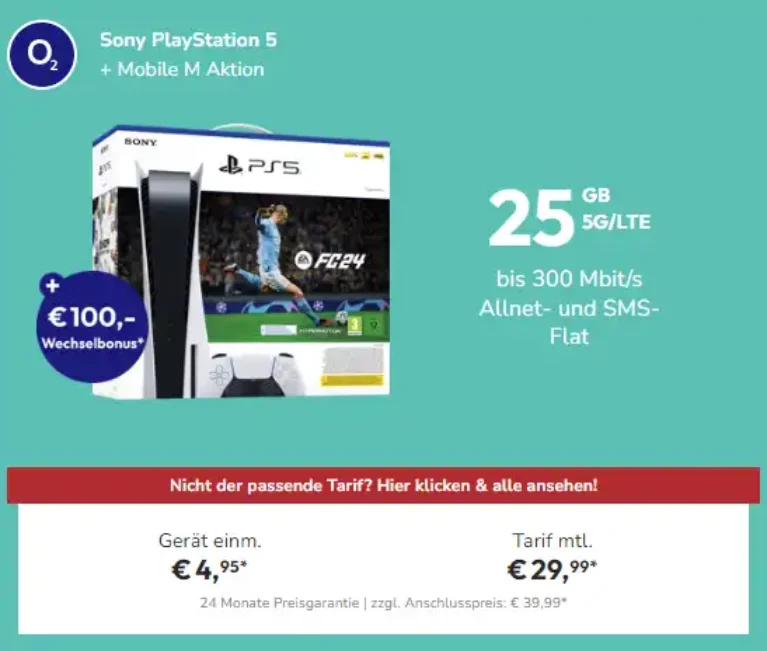 PS5 Lite Disc mit FC 24 Bundle für 4,95€ mit o2 Vertrag eff. 6,91 € / mit MNP 2,74€