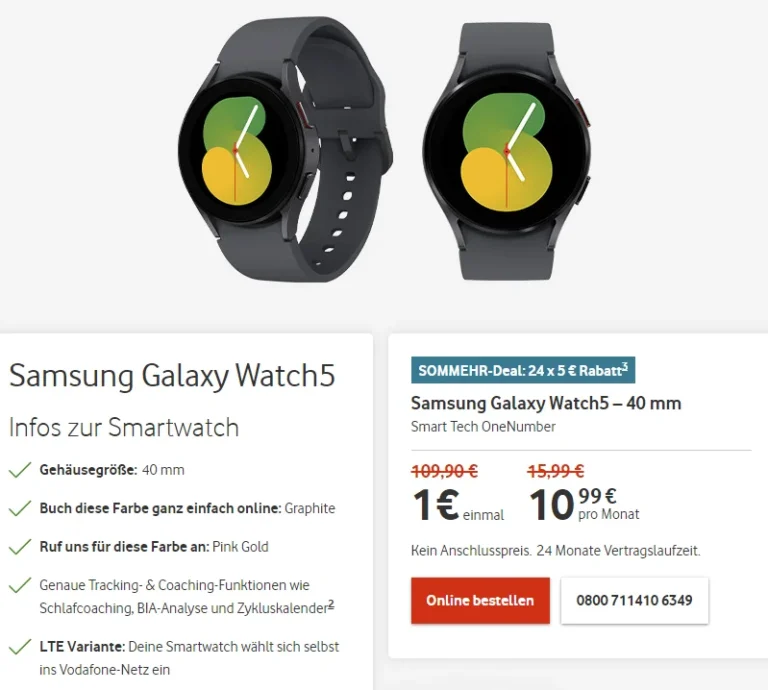 Galaxy Watch5 LTE für 1€ mit Vodafone OneNumber eff. 1,41€!