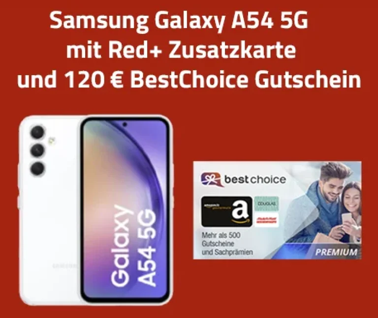 Galaxy A54 5G zum Schnäppchenpreis mit Vodafone Red+ Vodafone-Kunden mit Gigamobil, RED oder Smart-Tarifen aufgepasst! Hier kommt eine TOP Aktion, die ihr euch anschauen solltet. Für nur 20€/Monat bekommt ihr die Vodafone Red+ Zusatzkarte mit 5 GB 5G / LTE, dazu das Samsung Galaxy A54 für lediglich 1€ und einen 120€ BestChoice-Gutschein obendrauf. Rechnet man alles zusammen, ergeben sich fast 60€ Ersparnis im Vergleich zum...