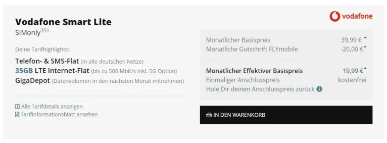 Vodafone Smart Lite: 35 GB effektiv nur 20,24 €/Monat! 😲🎉