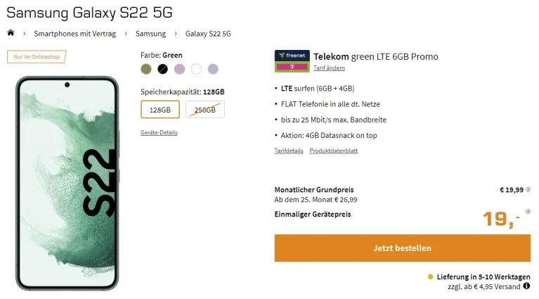 weiterlesen »Freenet Green Telekom 10GB ab 19,99€ mit Galaxy S22 für 29€