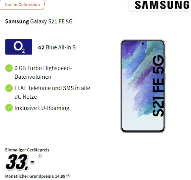 weiterlesen »o2 Blue All-in S 6 GB für 14,99€ mit Galaxy S21 FE für 33€