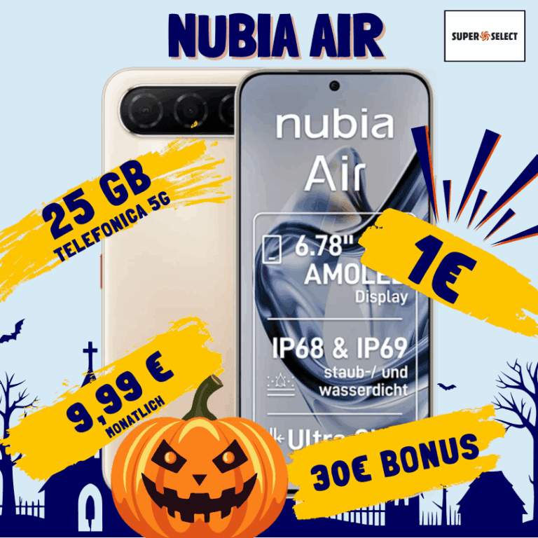 Du suchst nach einem günstigen Smartphone-Deal mit ordentlich Datenvolumen? Das aktuelle Angebot für das Nubia Air mit 256 GB Speicher könnte genau das Richtige für dich sein. Bei MediaMarkt bekommst du das Gerät für nur 1 Euro Zuzahlung in Kombination mit dem Super Select S Tarif mit 25 GB. Nubia Air + 25GB o2 nur 1,74€/M Effektivpreis 📱 Die wichtigsten Details zum Deal Das Nubia...