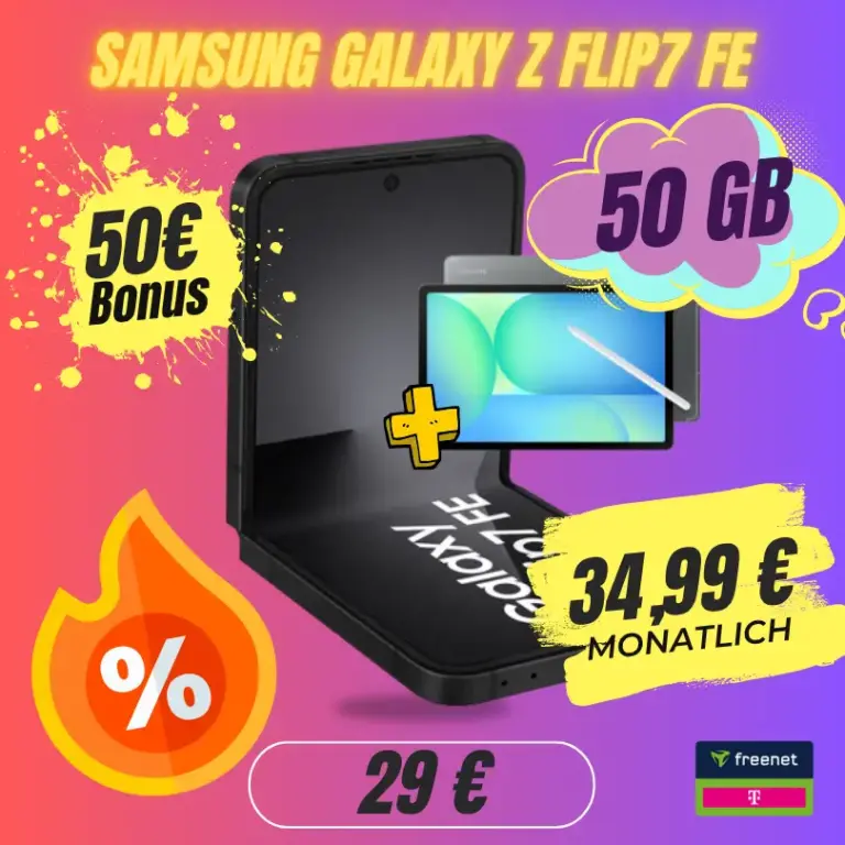 📱 Galaxy Z Flip 7 FE+Tablet+50GB Telekom nur -1,39€ eff.