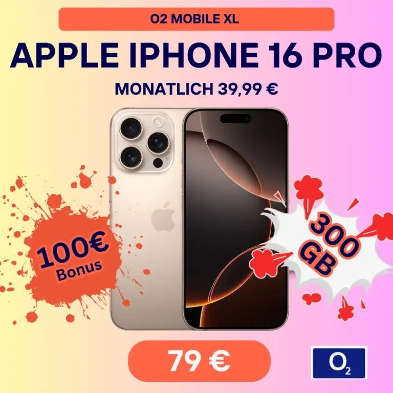 📱 iPhone 16 Pro + o2 XL 300GB nur 79€ | 4,03€ Effektiv