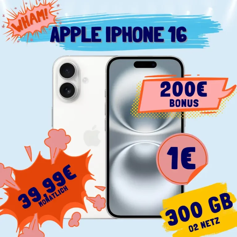 💰 iPhone 16 + 300 GB O₂-Tarif für eff. nur 3,36 € mtl. 📱