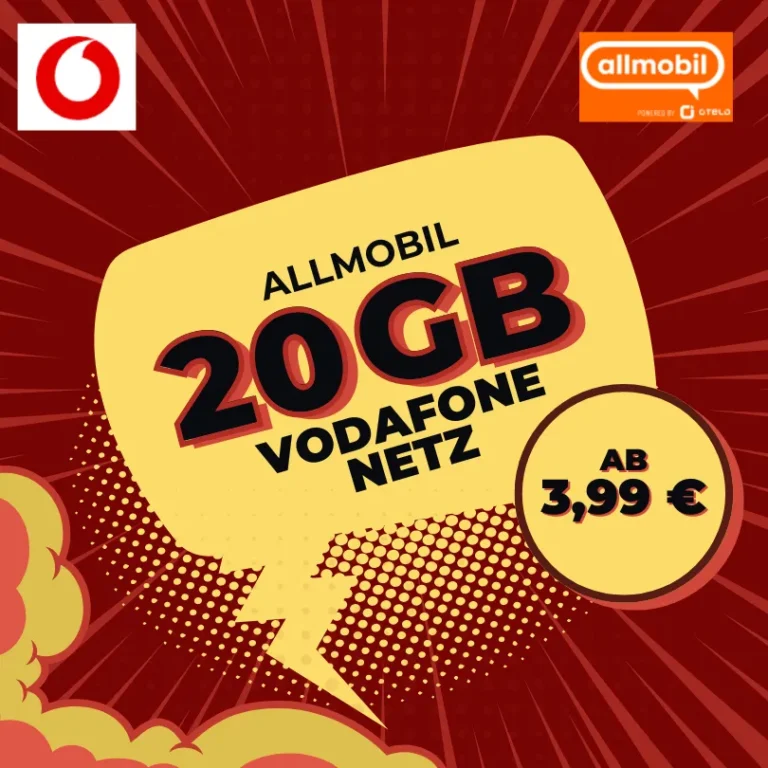 📱 20GB Vodafone Flat für 3,99€ – 96€ sparen! | Allmobil