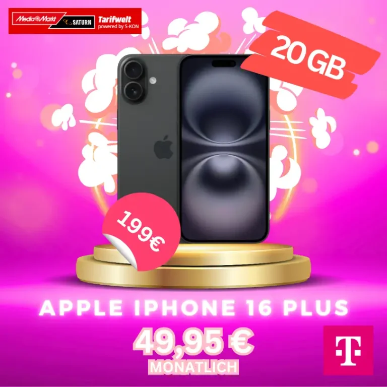 Du bist auf der Suche nach einem neuen iPhone 16 Plus? Aktuell gibt es ein Top-Angebot bei MediaMarkt / Saturn mit dem freenet Telekom Magenta Mobil S 20 GB Tarif! In diesem Artikel erfährst du alles, was du über dieses Angebot wissen musst – inklusive der Effektivpreis-Berechnung und aller relevanten Tarifdetails. Die Fakten zum Angebot Smartphone: Apple iPhone 16 Plus (128 GB) Tarif: freenet Telekom...