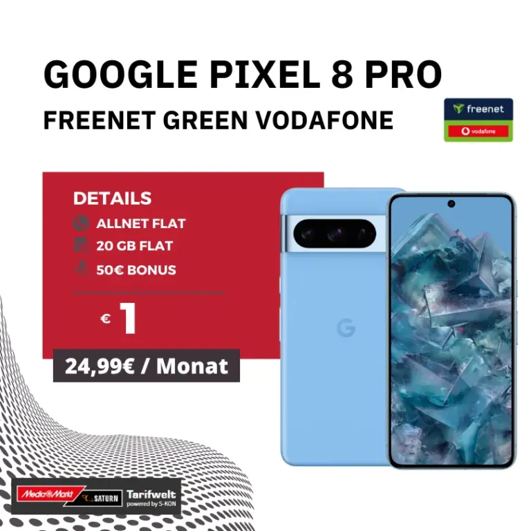 Das Google Pixel 8 Pro mit der Vodafone Allnet Flat ist jetzt bei MediaMarkt/Saturn erhältlich – und das zu einem unschlagbaren Preis. Für eine Zuzahlung von nur 49 € sicherst du dir das Top-Smartphone, zusammen mit 20 GB LTE-Datenvolumen für nur 24,99 € monatlich. Außerdem gibt es einen 50 € Bonus bei der Rufnummernmitnahme. Vorteile des Angebots Google Pixel 8 Pro für nur 49 €...