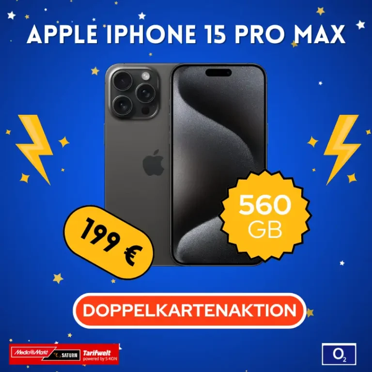 Du suchst nach einem High-End-Smartphone mit einem umfangreichen Datentarif? Dann ist das Apple iPhone 15 Pro Max mit dem o2 Mobile XL 280 GB Tarif bei MediaMarkt/Saturn genau das Richtige für dich. Für eine einmalige Zuzahlung von nur 199 EUR und einem monatlichen Grundpreis von 49,98 EUR erhältst du das aktuellste iPhone in Kombination mit einem riesigen Datenvolumen. Hier erfährst du alle Details zu diesem...