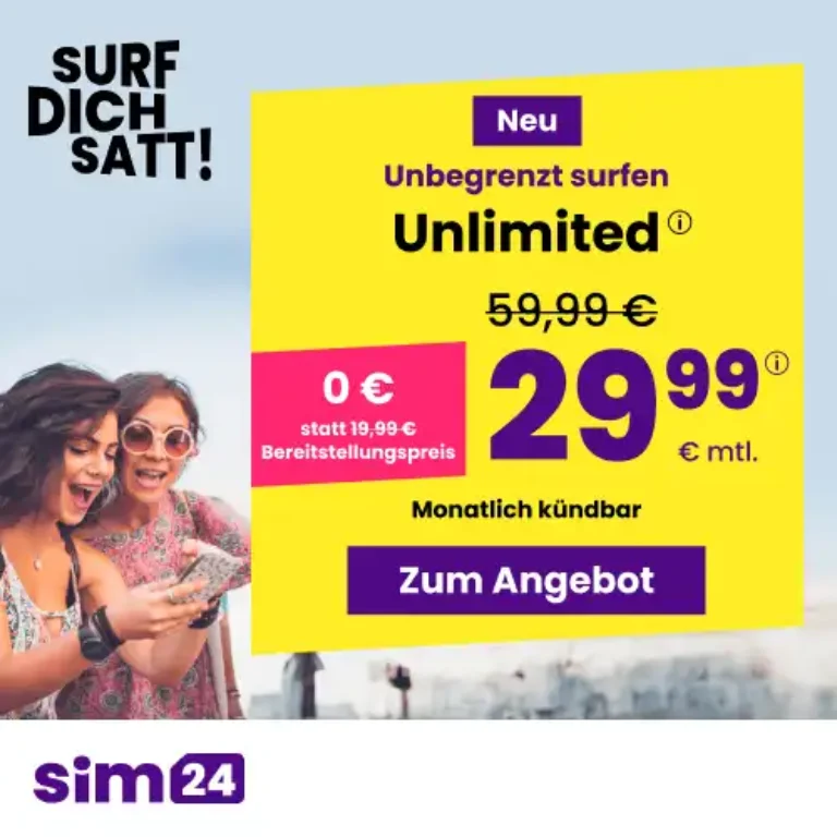 sim24 Unlimited Flat für 29,99 Euro – Unbegrenztes Datenvolumen