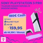 Starmobile präsentiert ein spannendes Bundle für Gaming- und Mobilfunk-Fans: Die brandneue PS5 Pro gibt’s aktuell in Kombination mit dem Telekom Magenta Mobil M Tarif für einmalig 159,95 Euro. Besonders attraktiv: Du erhältst 180 Euro Cashback von der Telekom und kannst zwischen dem Standard-Tarif oder der vergünstigten MagentaEINS-Variante wählen.