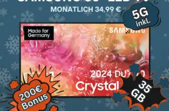 Dieses Bundle ist besonders interessant für alle, die ohnehin einen neuen Mobilfunkvertrag brauchen und gleichzeitig nach einem Fernseher suchen. Mit 20 GB Datenvolumen im Vodafone-Netz bekommst du einen soliden Tarif zu fairen Konditionen. Der Samsung TV kostet dich unterm Strich weniger als im regulären Handel, und der rechnerische Tarifpreis von nur 2,24 Euro monatlich macht das Angebot zu einem echten Schnäppchen.