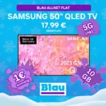Mit dem Samsung GQ50Q60CAU QLED 4K TV bietet Blau aktuell ein spannendes Bundle-Angebot inklusive Allnet-Flat an. Der TV überzeugt durch seine QLED-Technologie und zeitgemäße Ausstattung.