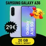 Galaxy A36 + O2 Blue 5,37€ 📱 20GB Deal 2025