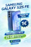 Das Samsung Galaxy S25 FE ist da – und MediaMarkt liefert direkt einen starken Deal: Die Fan Edition der S25-Serie bekommst du mit der freenet Allnet-Flat im Telefónica-Netz für nur 17,99 €/Monat. Mit dem Trade-In-Bonus von 100 € sinkt der Effektivpreis auf unschlagbare 0,37 €/Monat.