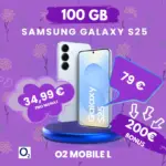 Das Samsung Galaxy S25 ist derzeit mit dem O₂-Mobile-L-Tarif bei MediaMarkt zu haben. Hier bekommst du das Smartphone mit einer Grundgebühr von 29,99€ monatlich und einer einmaligen Zuzahlung von 79€. Im Tarif enthalten sind satte 100 GB Datenvolumen im 5G-Netz sowie eine Allnet- und SMS-Flat. Zusätzlich profitierst du vom O₂-Grow-Vorteil, der dir jedes Jahr 10 GB mehr Datenvolumen pro Monat beschert.