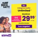 | sim24 | Unlimited | Unlimitiert | Bis zu 50 MBit/s | 29,99 Euro | Keine | Monatlich kündbar |