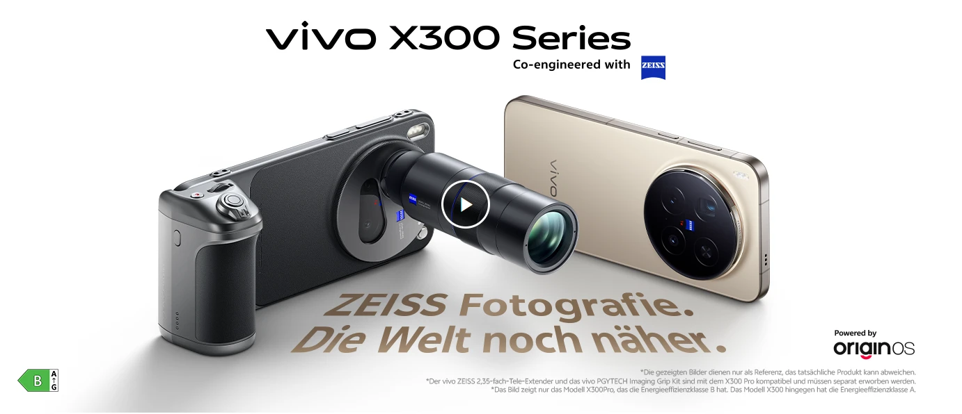 Der 200 MP Periskop-Sensor liefert dank 3,5× optischem Zoom gestochen scharfe Aufnahmen auch aus großer Entfernung. Bis zu 100× Digitalzoom ist möglich. Optional lässt sich der ZEISS 2,35× Tele-Extender als physisches Zubehör aufstecken – damit wird das X300 Pro zur Kompaktkamera.